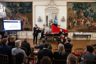 Aktuality23. října jsme v Praze na pozvání jeho excelence velvyslance Francie v ČR slavnostně představili naši novou česko-francouzskou virtuální výstavu Do Paříže! Středoevropští hudebníci u pařížských nakladatelů s jejím čerstvě vytištěným katalogem. V hudebním salonu Velvyslanectví Francie zazněla díla Čechů působících v Paříži 18. století v podání studentů HF JAMU i soudobá tvorba na cembalo.